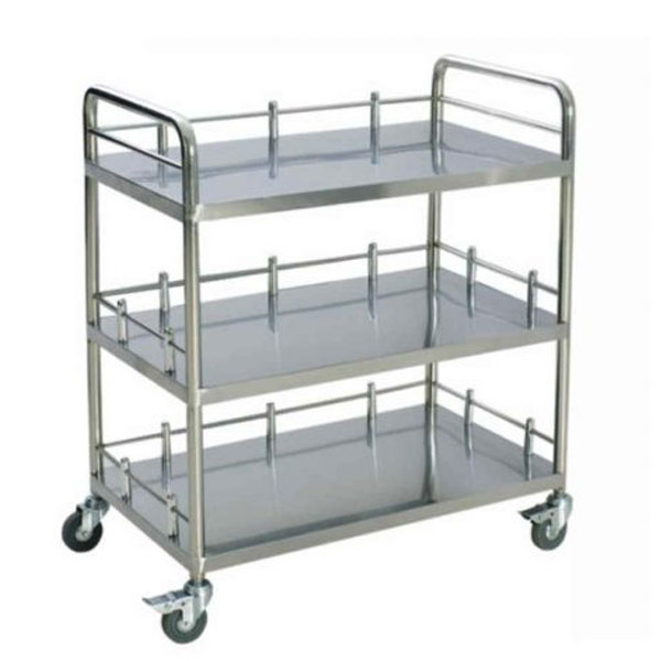 Instrument trolley mainly used in hospitals / medical centers to carry surgical instruments. These trolleys are generally square metal trolley with rollers on each leg to assist in the quick movement of the trolley around the place.